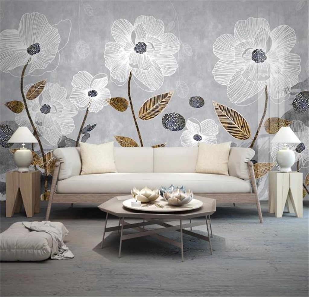 3d Wallpaper Living Room Line Drawing Floral Abstract Ink Light